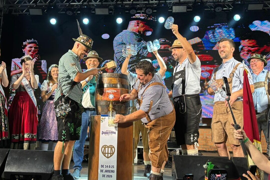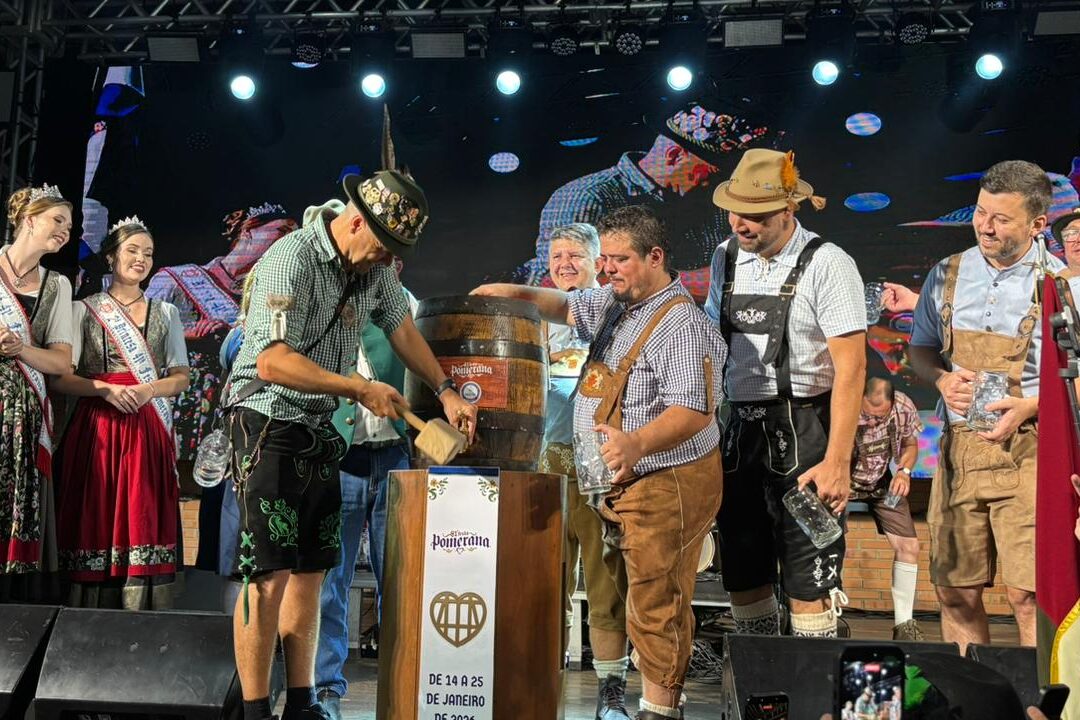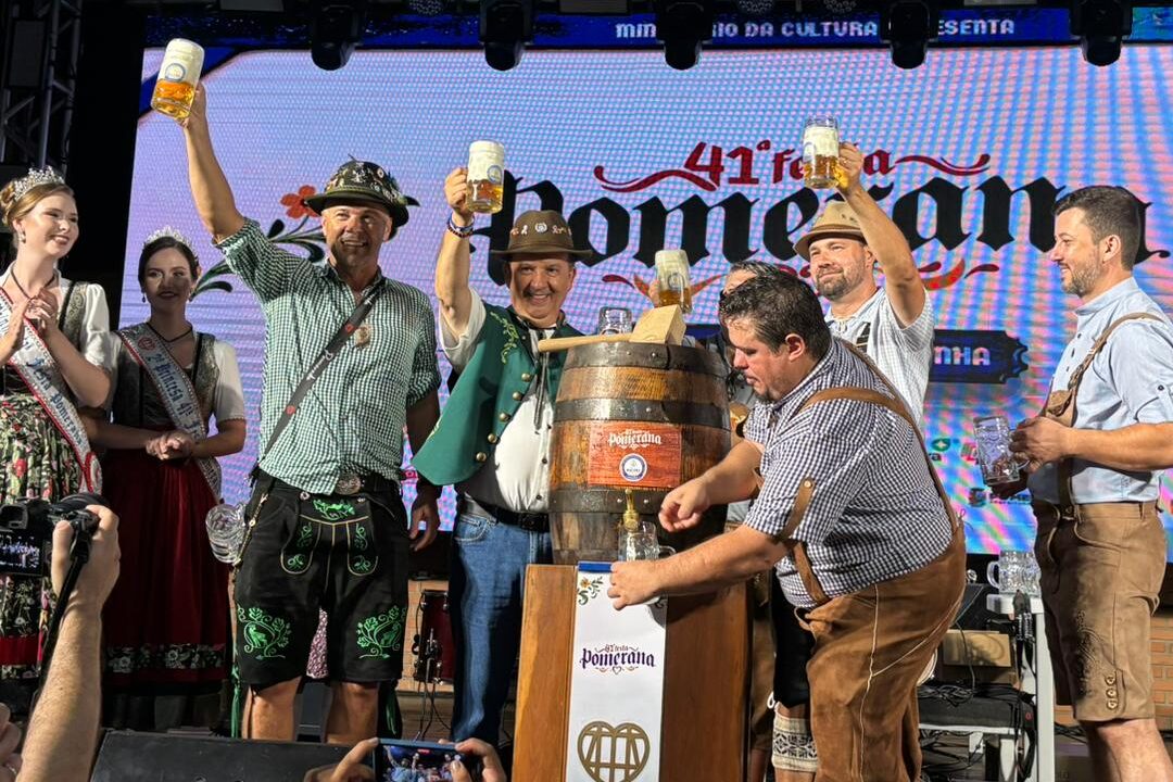 Por fim, Ramthun declarou aberta a 41ª Festa Pomerana, com a apresentação do caneco oficial das festividades e a colocação da torneira no primeiro barril de chope. Foram necessárias 16 marteladas por parte do prefeito, para que o “líquido precioso” começasse a jorrar.