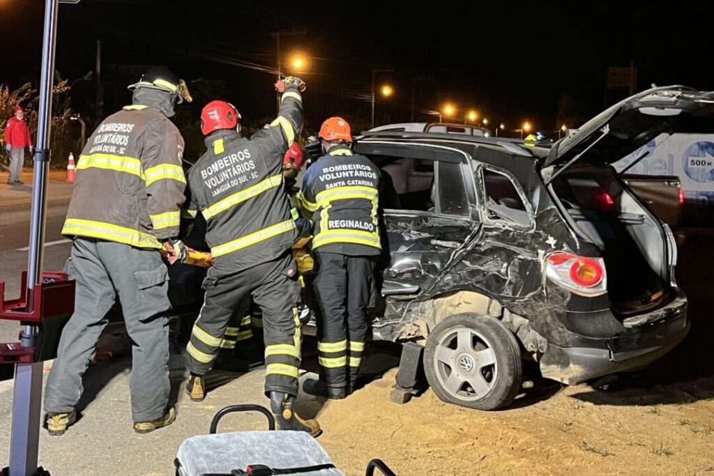 Uma colisão entre dois veículos mobilizou os bombeiros voluntários no início da noite desta terça-feira, dia 14, no km 87 da SC-110, no bairro Barra do Rio Cerro, em Jaraguá do Sul.