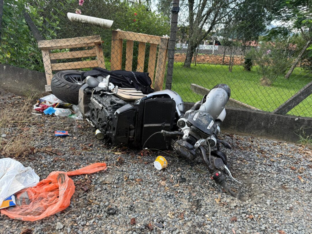 Um grave acidente, envolvendo uma motocicleta Triumph e uma Chevrolet / Montana, ocorreu por volta das 15h30min desta quinta-feira, dia 26, na SC-421 – próximo à Pomermotos -, em Testo Central Alto.