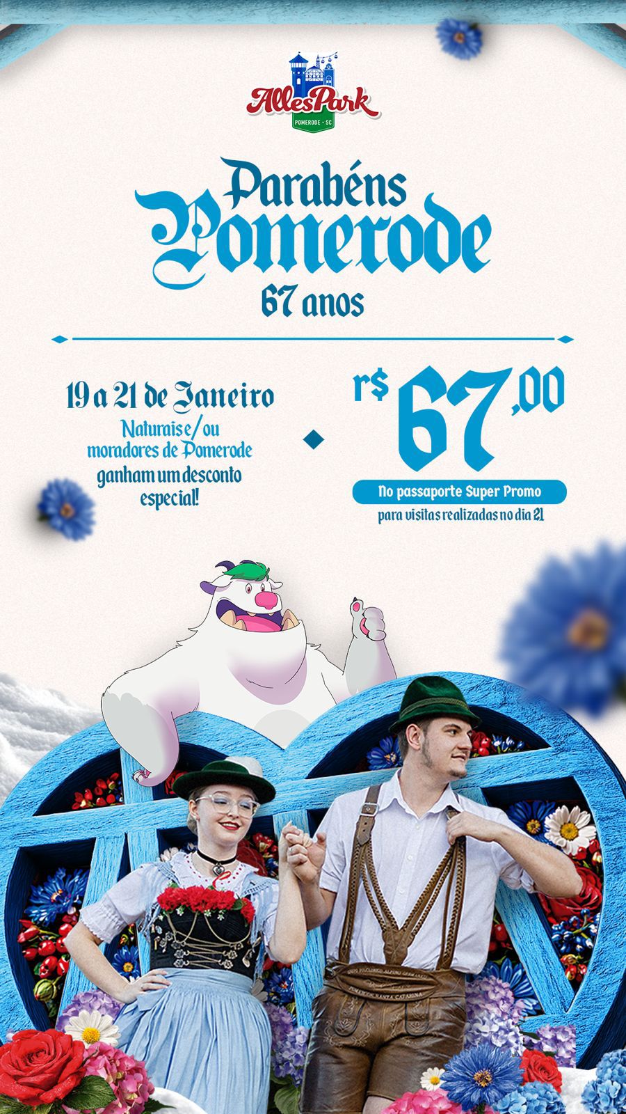 Pomerode completa nesta quarta-feira, 21 de janeiro, 67 anos de história. A celebração ocorre simultaneamente à 41ª Festa Pomerana, que destaca a cultura alemã com gastronomia típica, danças folclóricas e competições que atraem milhares de visitantes à região.