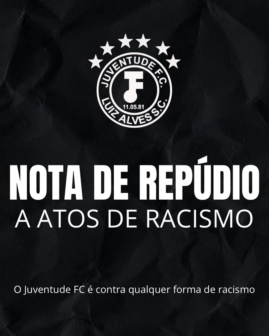 Em suas Redes Socais, o Juventude Futebol Clube manifestou solidariedade ao árbitro Washington Barbosa Lemos pelos insultos racistas proferidos por um torcedor na partida de sábado.