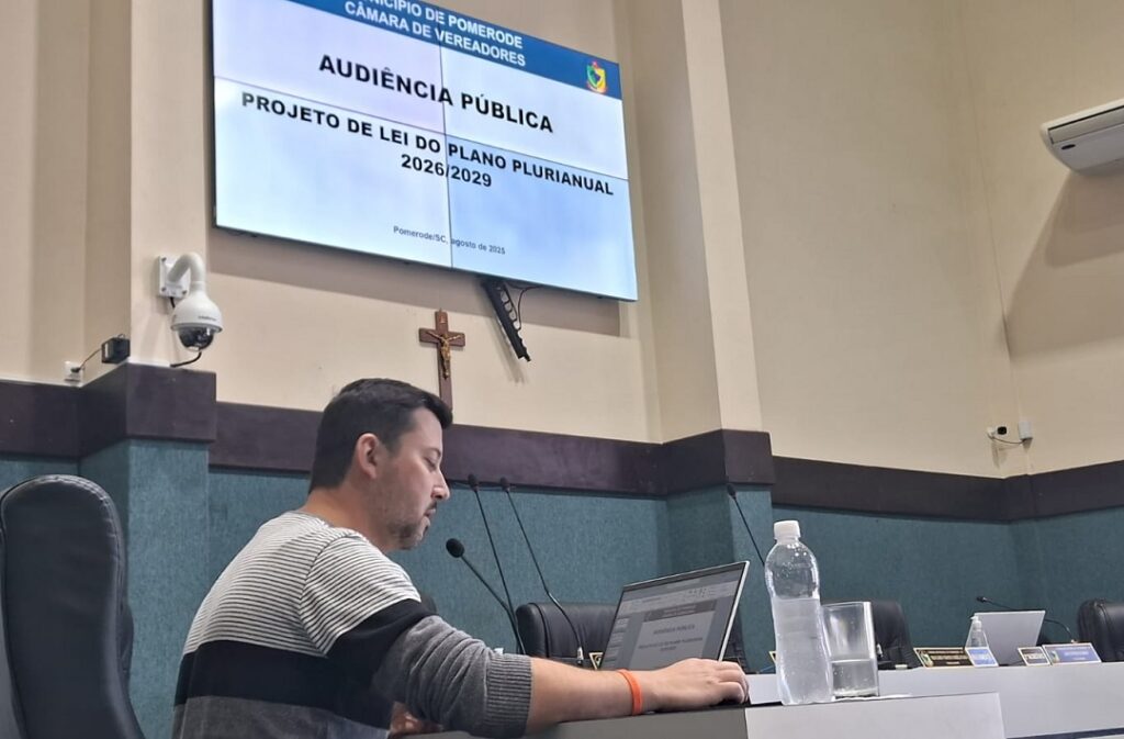O Projeto de Lei Ordinária nº 3081/2025, que trata do Plano Plurianual do Município de Pomerode para o quadriênio 2026-2029, encontra-se em tramitação na Câmara de Vereadores e seguirá para análise e votação em Plenário.