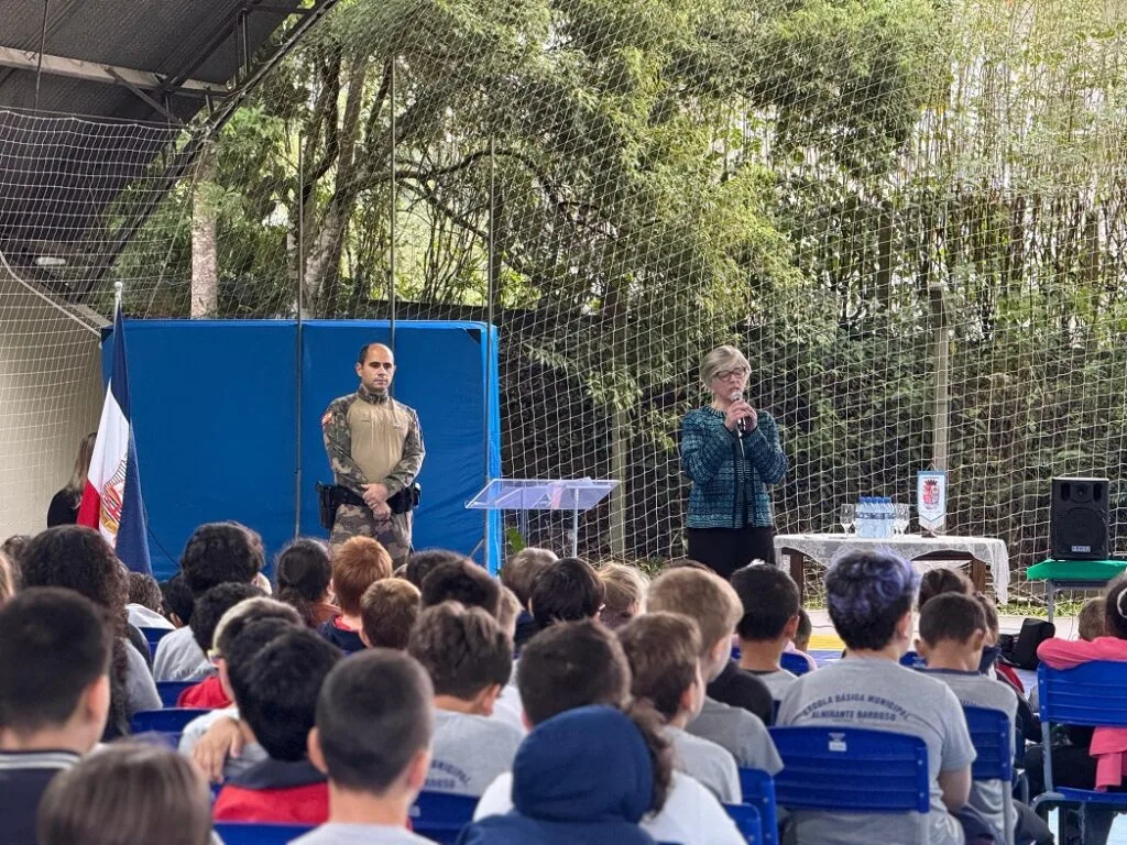 Nesta quinta-feira, dia 22, a Escola Básica Municipal Almirante Barroso foi palco da aula inaugural do Programa Protetor Ambiental (Proa), uma iniciativa da Polícia Militar Ambiental (PMA) que tem como objetivo promover a educação ambiental entre adolescentes de 12 a 14 anos.