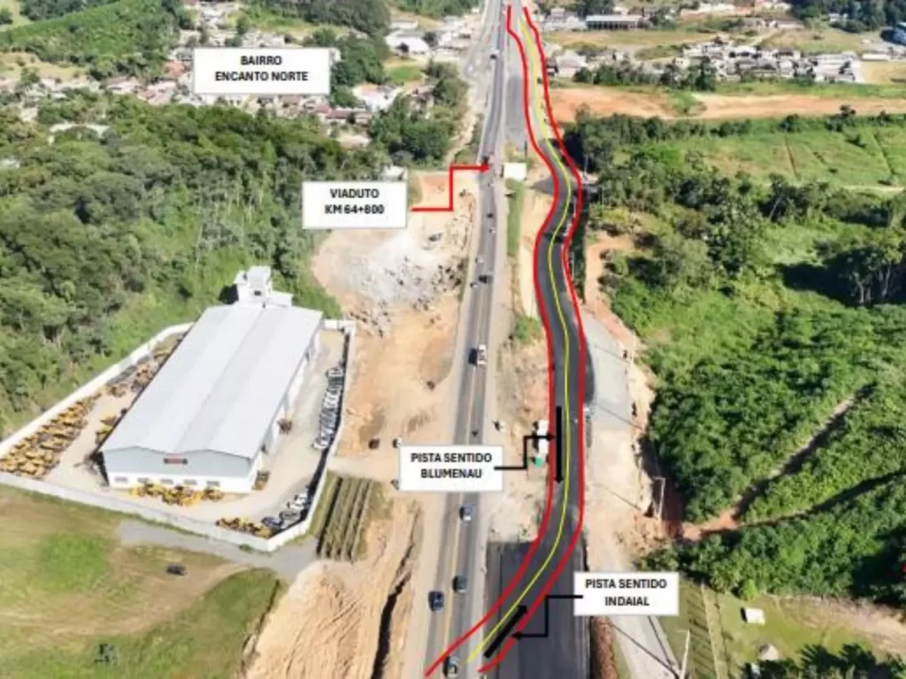 A partir desta quarta-feira (7), um desvio provisório no trecho da BR-470, entre os quilômetros 64 e 65, no bairro
