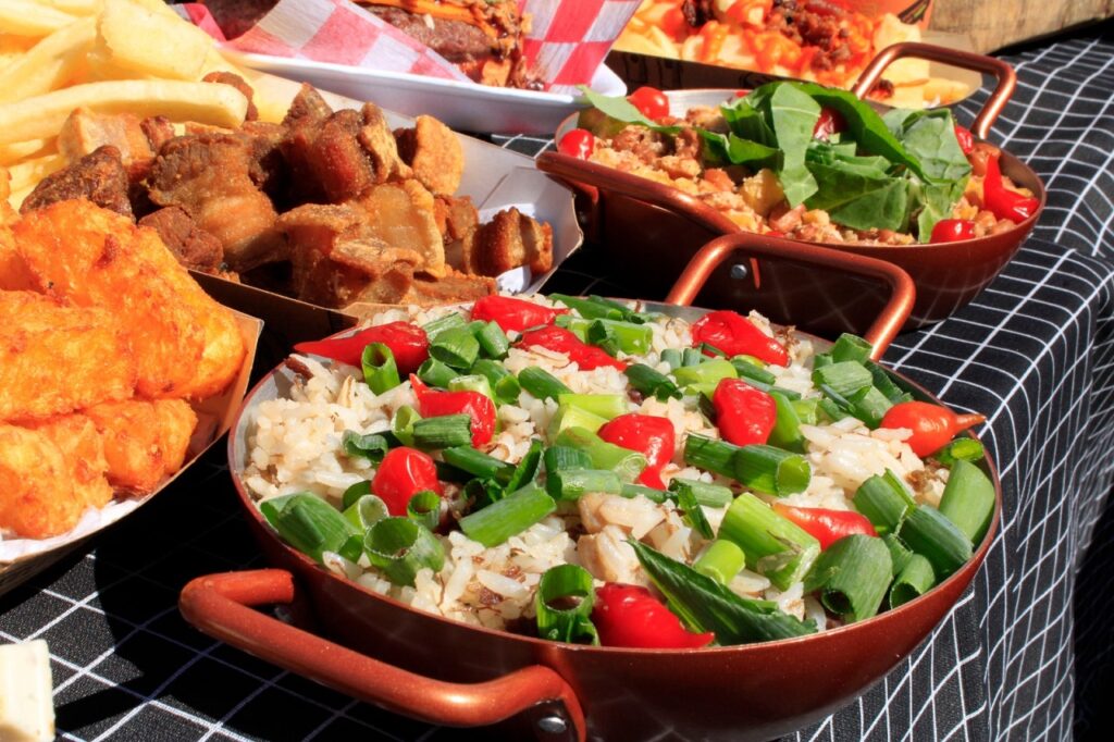 Mas a experiência vai muito além. Mais de 25 expositores participam do evento, oferecendo um cardápio variado que inclui costela fogo de chão, baião de dois, feijão tropeiro, hambúrgueres com torresmo ou shimeji, batatas recheadas, lanches de costela, opções de doces artesanais e sobremesas.