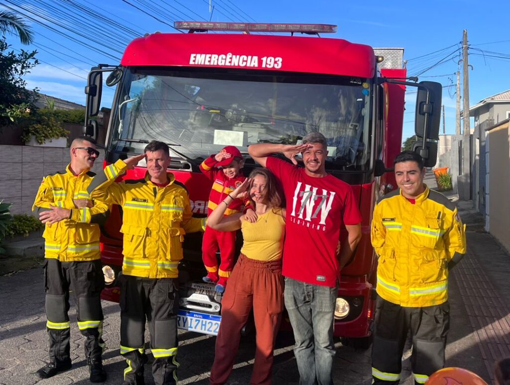Apaixonado por bombeiros, o menino recebeu uma visita inesperada e inesquecível durante sua festa de aniversário, em Florianópolis: uma guarnição do Corpo de Bombeiros Militar de Santa Catarina (CBMSC) chegou de surpresa, com direito a sirenes, uniformes e muito carinho.