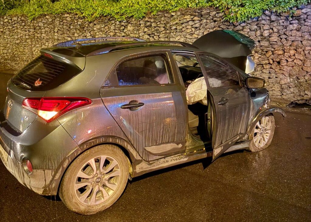 No fim da noite desta quinta-feira, 02 de outubro, uma saída de pista, seguida de colisão contra um muro de contenção de pedras, foi registrada na SC-110.