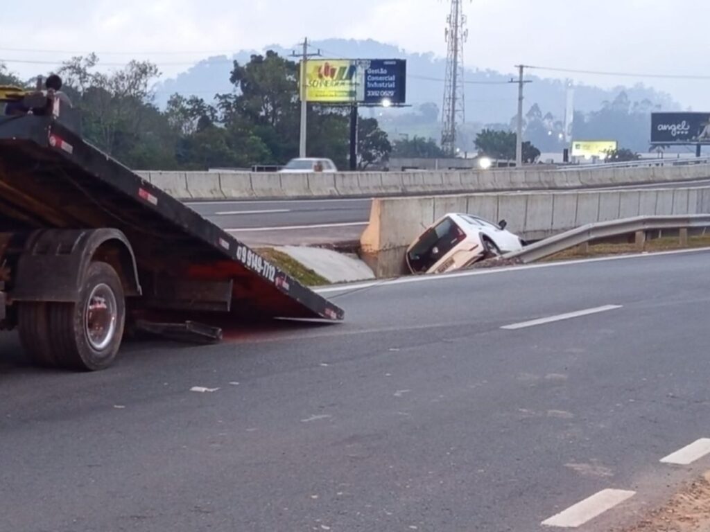 Segundo a PRF, o motorista de um Volkswagen / Up! perdeu o controle, saiu da pista e capotou, ficando com o carro prensado entre a ponte e o guard-rail. Apesar do impacto, não houve feridos e os danos foram apenas materiais.