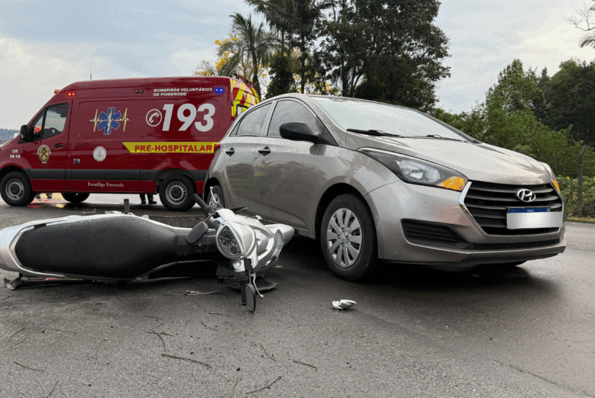 Uma colisão traseira, entre uma moto e um carro, foi registrada no fim da tarde desta segunda-feira, dia 06, na SC-421, em Testo Central.