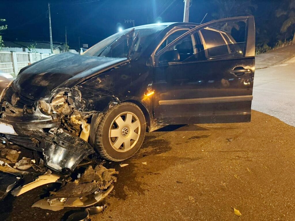 Uma colisão frontal foi registrada por volta das 18h30min desta terça-feira, dia 09, no cruzamento das ruas Presidente Juscelino e Alberto Spredemann, bairro Ribeirão Areia.
