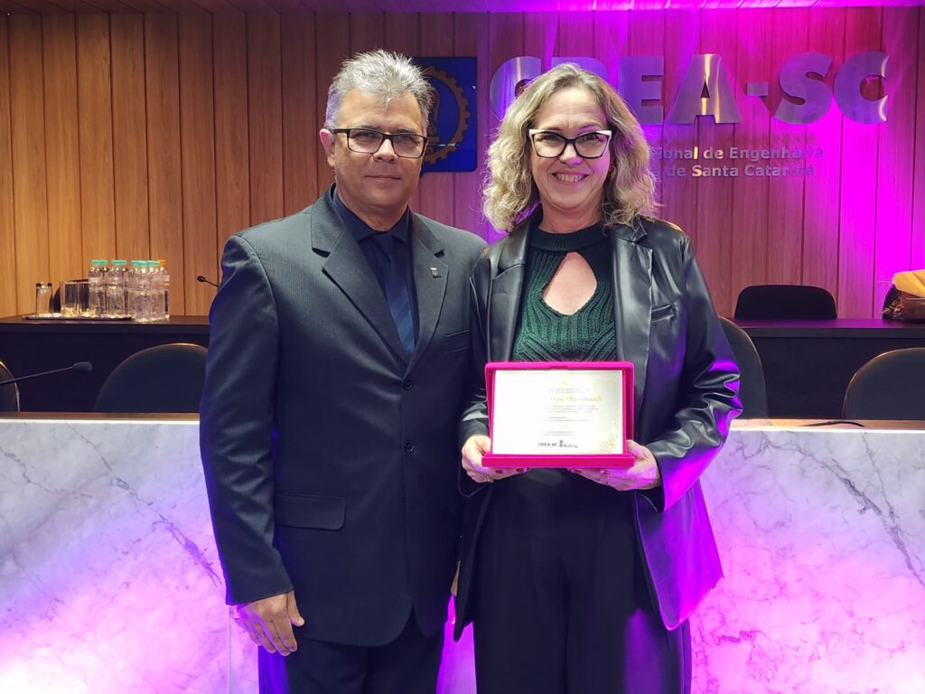 Entre as homenageadas, estava a Coordenadora da Defesa Civil de Pomerode, Germaine Aline Bernhardt. Ela foi indicada pela Câmara de Geologia, Agrimensura e Engenharia de Minas da entidade.