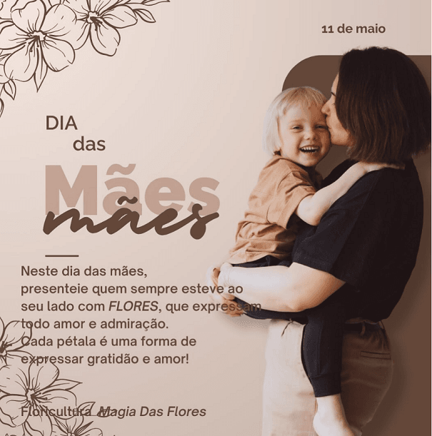 A Floricultura Magia das Flores estará com atendimento especial neste final de semana do Dia das Mães: