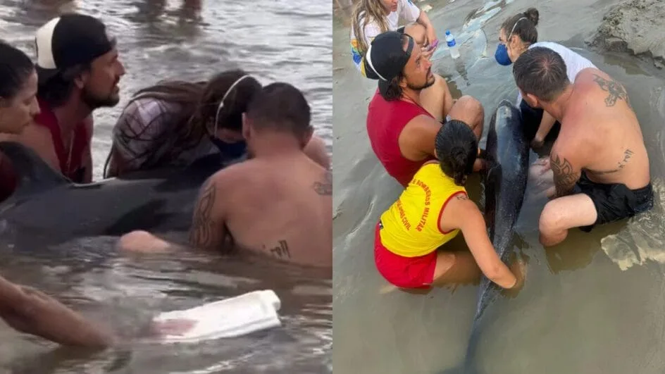 A Polícia Militar de Santa Catarina (PMSC) também esteve no local para controlar a grande aglomeração de banhistas, atraídos pela presença do animal. Moradores e turistas acompanharam o resgate de perto, e vídeos da operação ganharam destaque nas redes sociais, evidenciando a comoção e o esforço conjunto para salvar o golfinho.