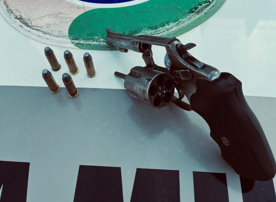 Foi realizado buscas no interior do quarto, que resultaram na apreensão de um revólver municiado e pronto para uso, escondido sob a cama.