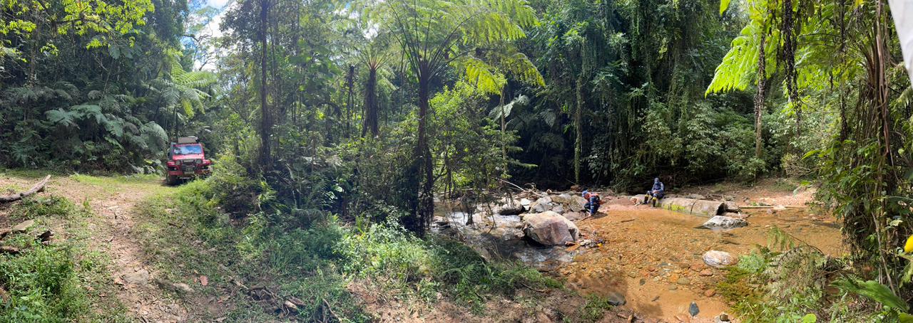 Foram percorridas diversas trilhas e leitos de cursos de água da região, a fim de se buscar locais de interesse e vestígios.
