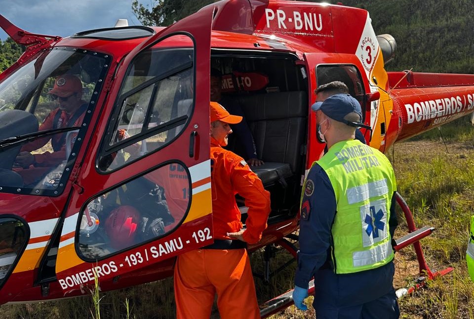 Ele foi trazido pela aeronave até local de ponto de encontro com a guarnição de Guabiruba, que prestou os primeiros cuidados e o encaminhou ao Hospital Azambuja, para avaliação médica.