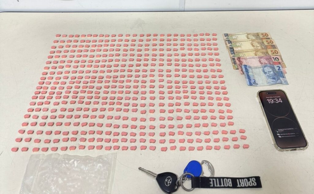 Porém, durante a busca pessoal e veicular, foram encontrados 503 comprimidos de ecstasy, um aparelho celular e R$ 162,00.