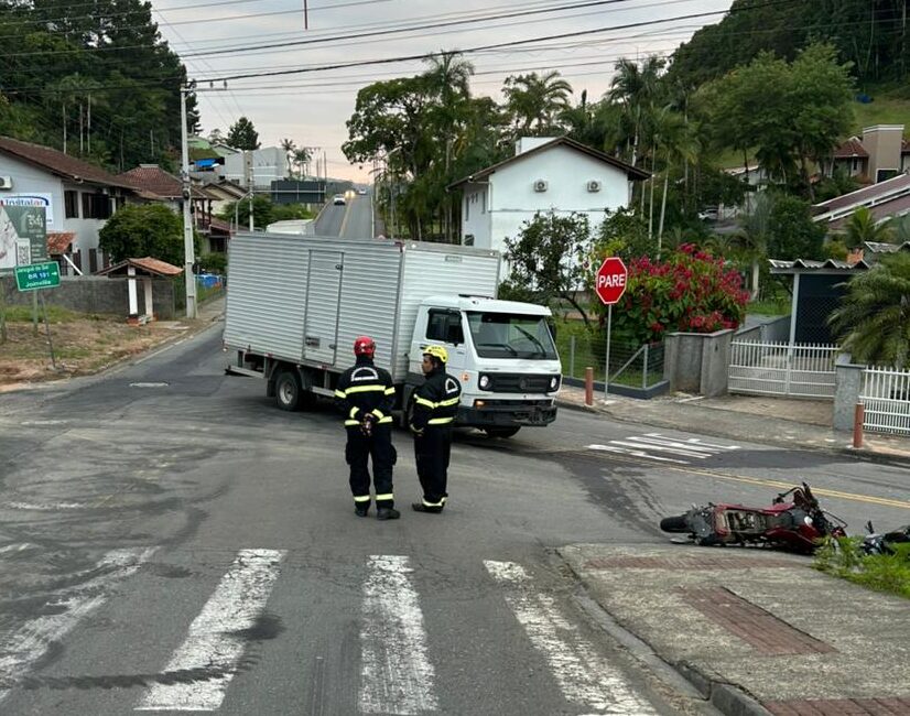 De acordo com as informações, um caminhão VW / 8.160 transitava pela Rua Alberto Spredemann, no sentido bairro – Centro quando, ao acessar a Rua Presidente Juscelino, acabou cortando a frente de uma motocicleta Yamaha / Lander XTZ 250, que seguia pela mesma via, em sentido oposto.
