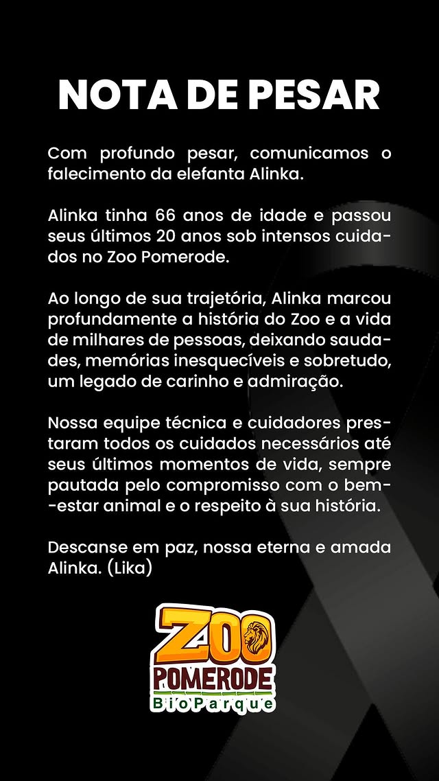 Nossos mais sinceros a toda equipe do Zoo Pomerode, pelo falecimento de “Lika”.