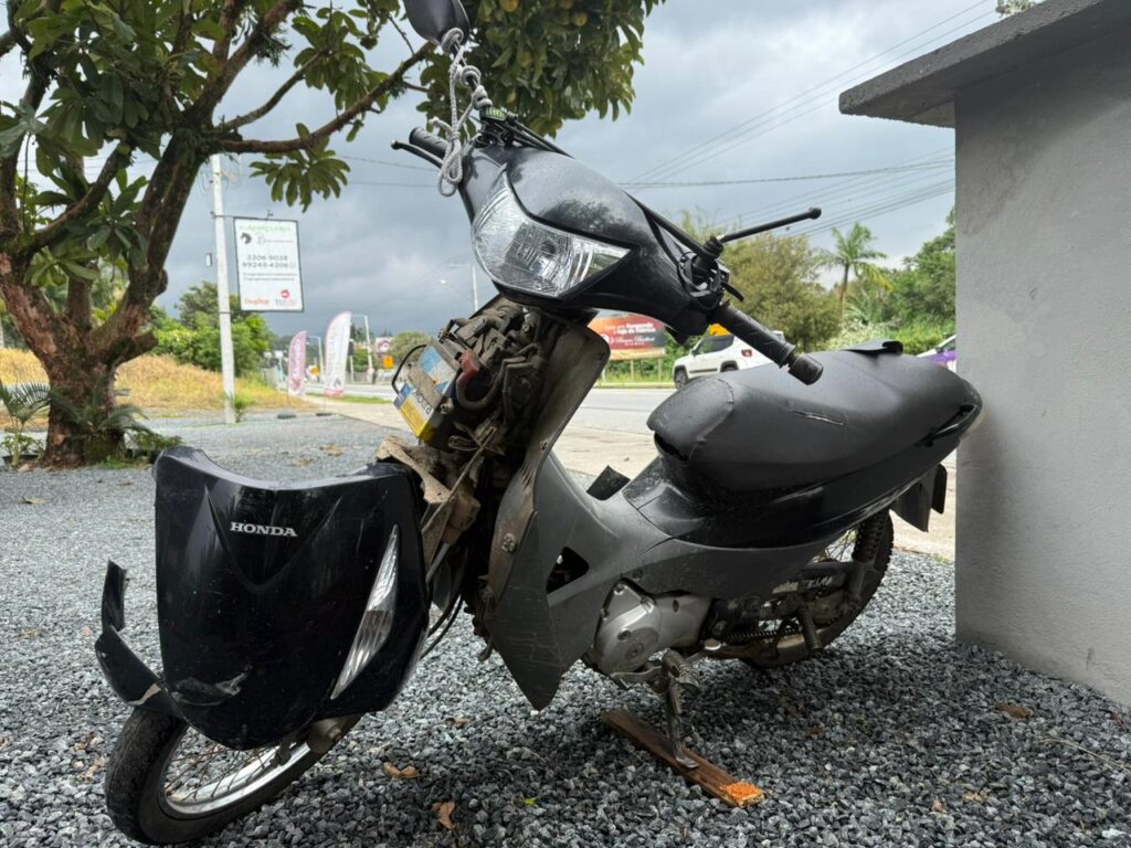 A colisão traseira ocorreu na SC-110, próximo ao Bar da Noila, e envolveu uma Honda / Biz e uma BMW / X5.