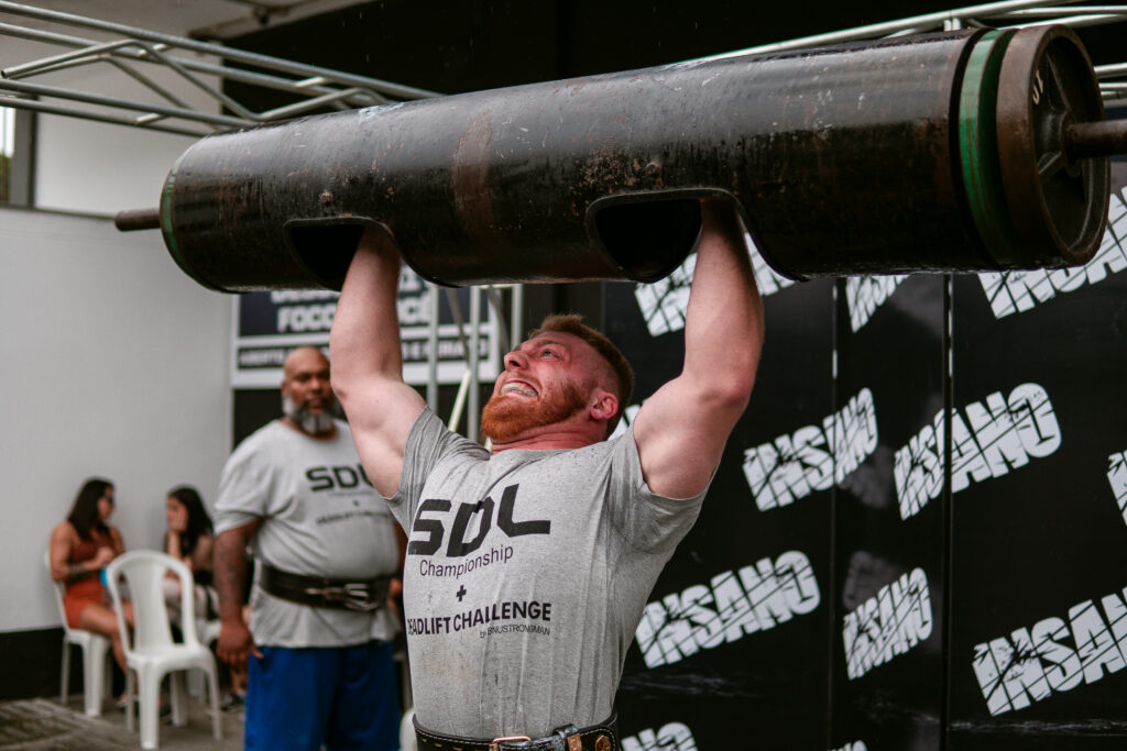 Hercules Hold – uma prova de resistência extrema, na qual os participantes precisam sustentar colunas pesadas pelo maior tempo possível.