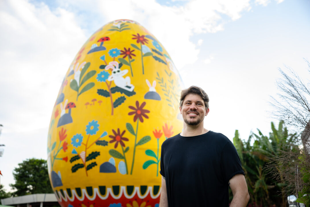 Na edição de 2026 da Osterfest, o escritor e ilustrador Guilherme Karsten coloriu o ovo gigante.