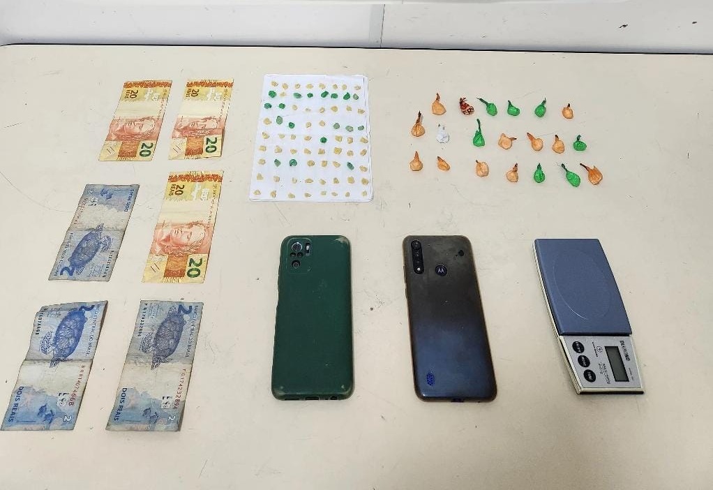 Também foram apreendidos dois aparelhos celulares em posse dos abordados.