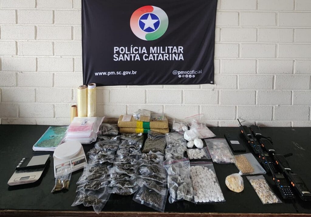 Diante da fundada suspeita, a guarnição entrou na casa e localizou 2,372kg de maconha, 749g de haxixe, 530g de cocaína, 158g de crack, 43 micropontos de LSD, dois comprimidos de ecstasy, três balanças de precisão, oito radiocomunicadores, um aparelho celular, 11 munições de calibre 32 e 38, dois cadernos contendo anotações relacionadas ao tráfico de drogas e diversas embalagens plásticas utilizadas para o preparo e a comercialização de entorpecentes.