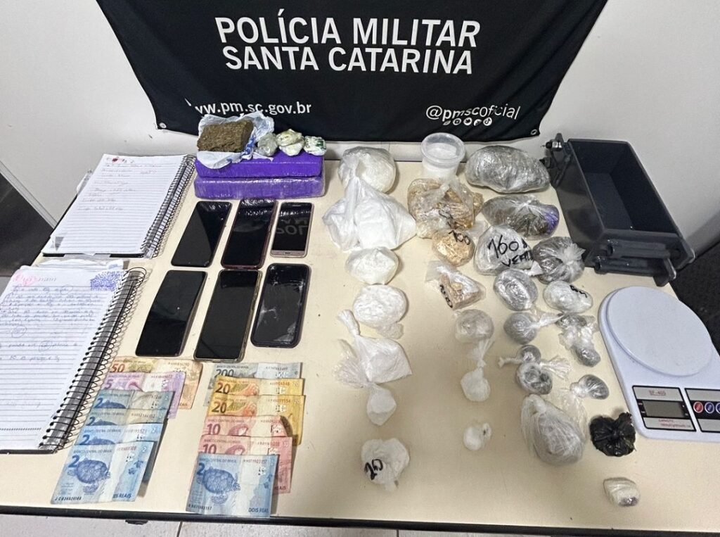 Após a abordagem, o homem informou que havia mais drogas no local de onde ele buscou. Então, guarnições se deslocaram ao endereço repassado (bairro Encano do Norte, em Indaial), onde se encontrava a moradora e seu filho.