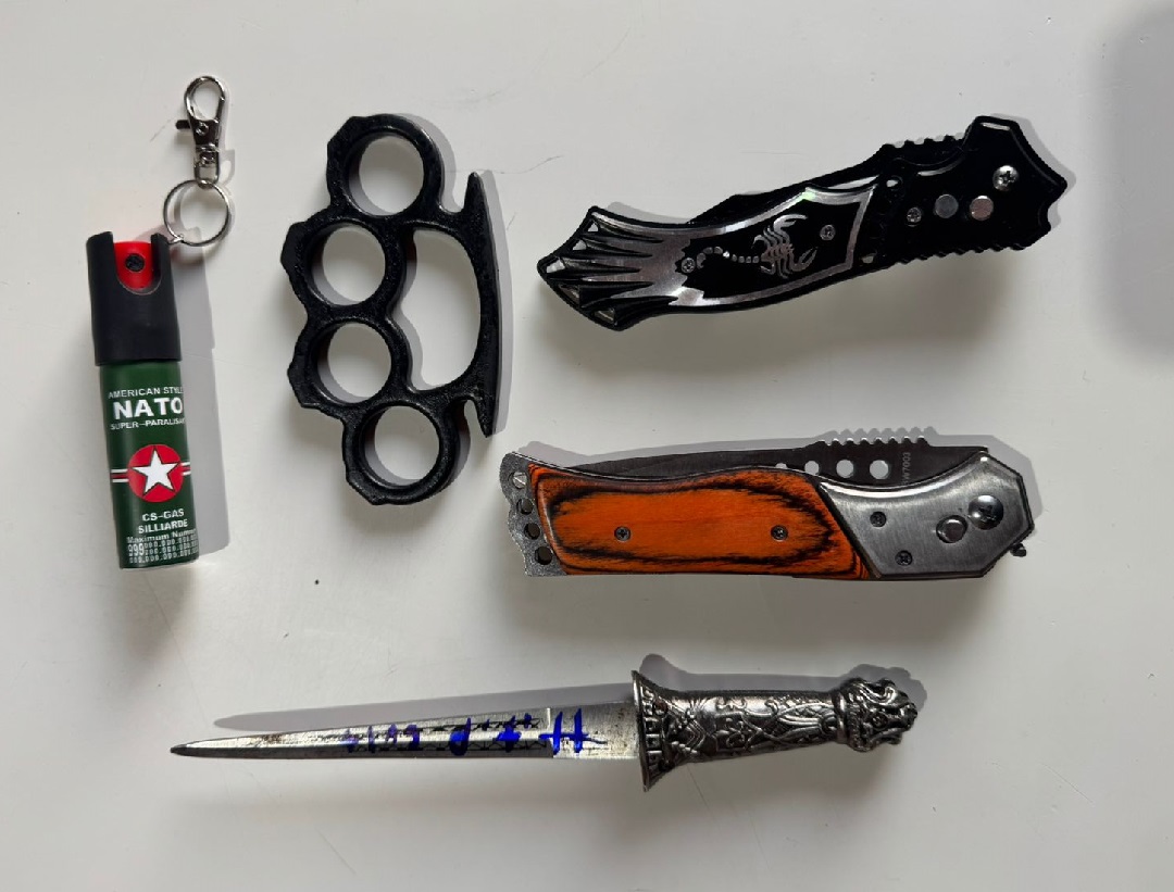 Durante as buscas, foram apreendidas dispositivos eletrônicos, armas brancas (canivetes, punhal e soco inglês), substâncias com potencial para produção de explosivos e farto material com simbologia nazista.