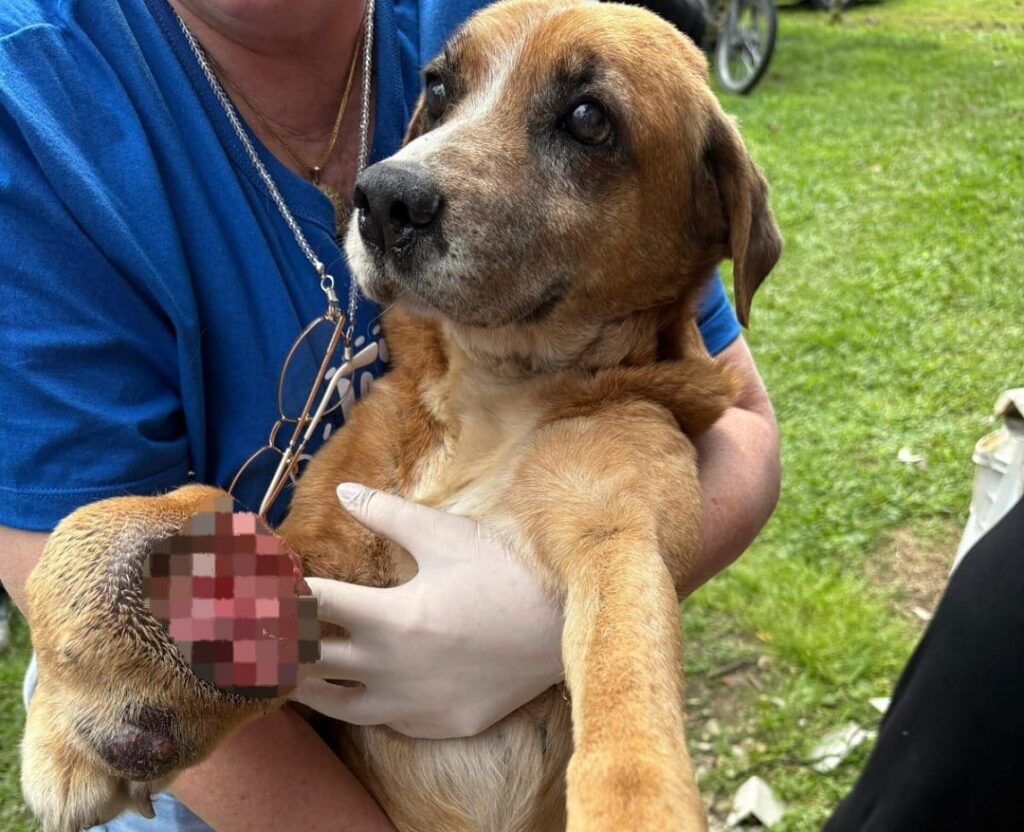 Com base na denúncia, a Polícia Civil e a Superintendência de Meio Ambiente dirigiram-se ao local e verificaram que o animal apresentava grande lesão nas patas.