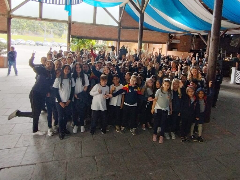 Divididos em quatro turmas, os alunos conheceram toda a estrutura e atrações da festa, além de terem contato com a história de Pomerode e da própria Pomerlamm Fest.