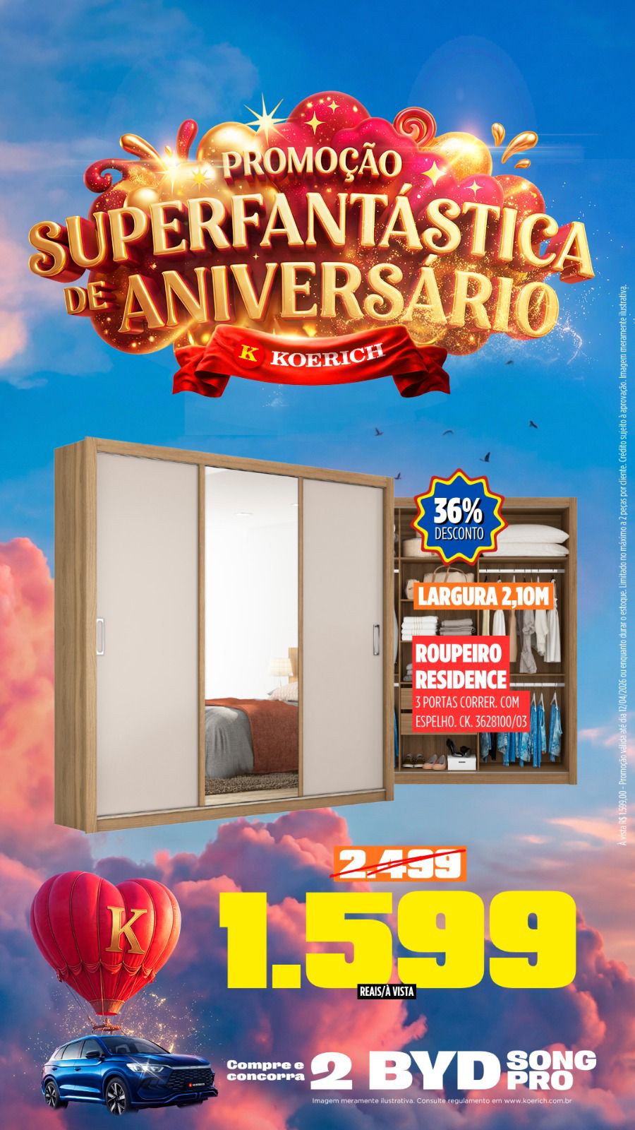 O aniversário é nosso, mas o presente quem ganha é você! Preparamos uma seleção especial de produtos com preços imbatíveis para você renovar sua casa com a qualidade que só o Koerich oferece.