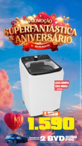 Lava Roupa Midea 13kg com alta capacidade e ciclos completos de lavagem por apenas R$ 1.590 à vista.