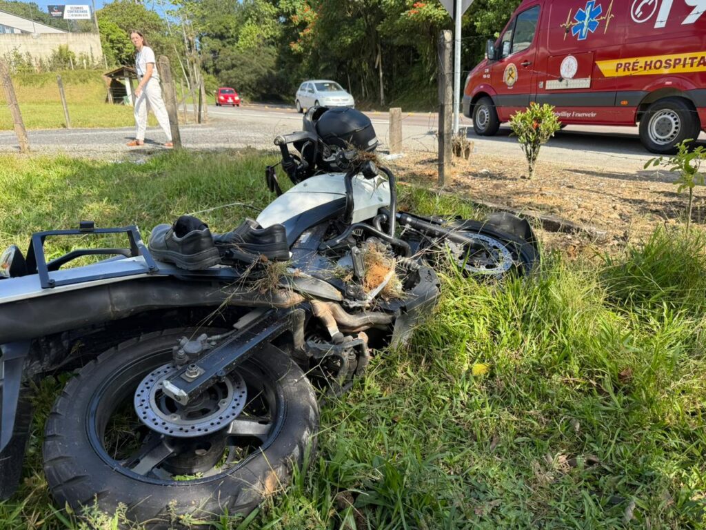 O sinistro ocorreu por volta das 14h, na SC-421, próximo à entrada da Rua Alfonso Koch.