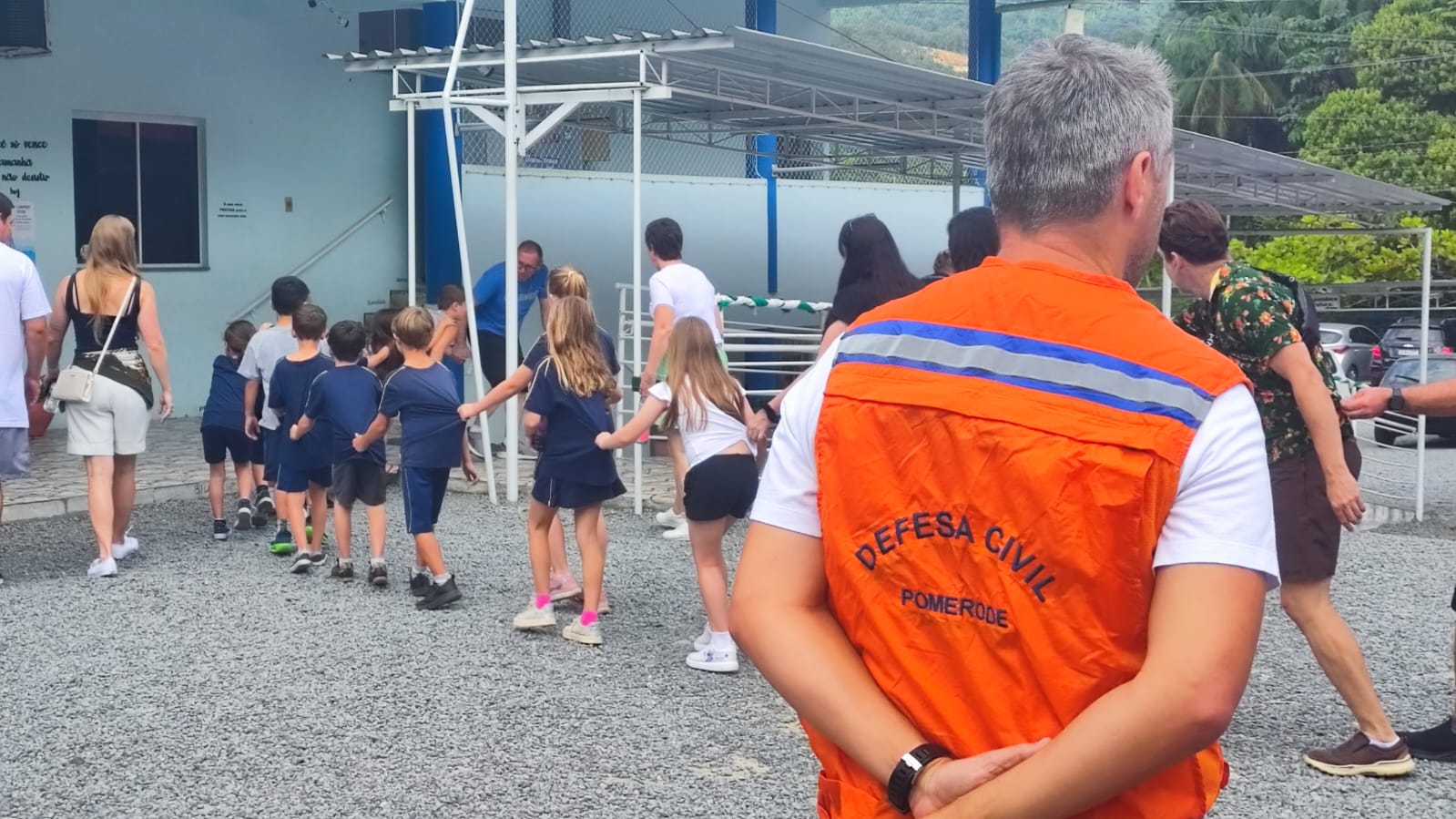 A ação uniu esforços do Grupo de Ações Coordenadas (GRAC), Defesa Civil de Pomerode, Corpo de Bombeiros Voluntários, polícias Civil e Militar, Getran, secretarias municipais, além de pais, alunos e comunidade escolar.