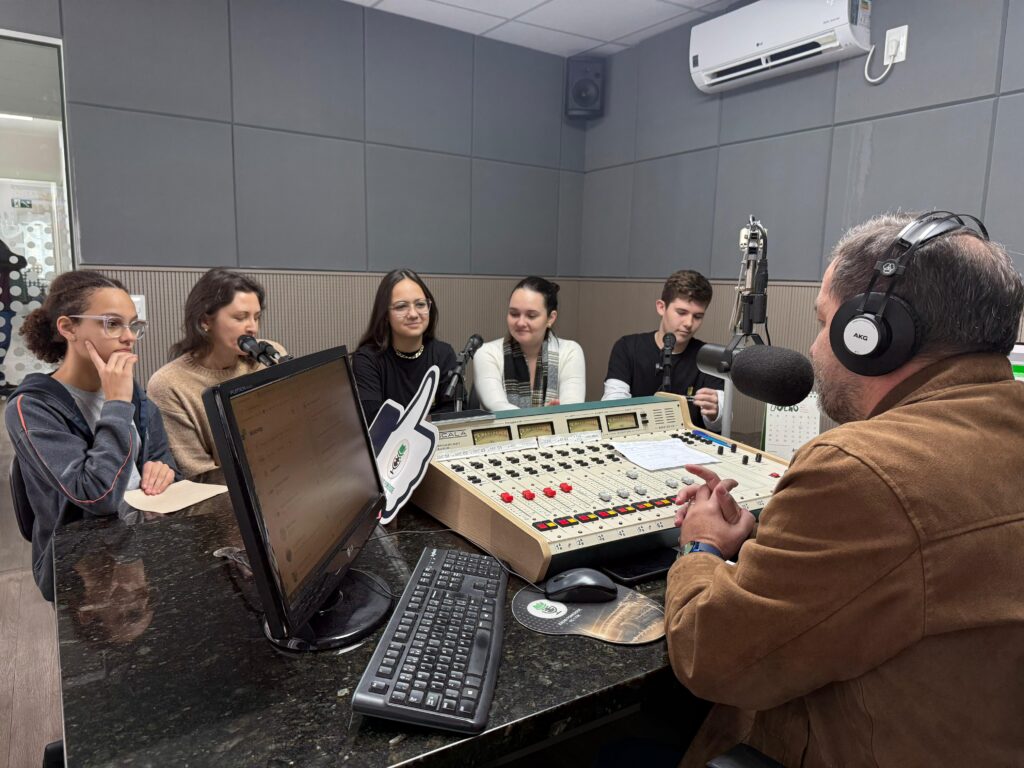Na manhã desta quinta-feira, 03 de julho, estiveram presentes na Rádio Pomerode, a coordenadora do Projeto Vereador Mirim, Cleide Rauber; a presidente em exercício da Câmara de Vereadores, Isadora Zinnke; e os vereadores mirins Thobias Siewerdt, da E.B.M. Olavo Bilac; Isabella Ritzke Craes, do Colégio Fátima; e Sarah Borges Lucio, da E.E.B.M. Duque de Caxias.