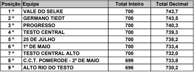 A próxima etapa será disputada nos dias 13 e 14 de novembro, no C.D.R. Progresso, no Vale do Selke.