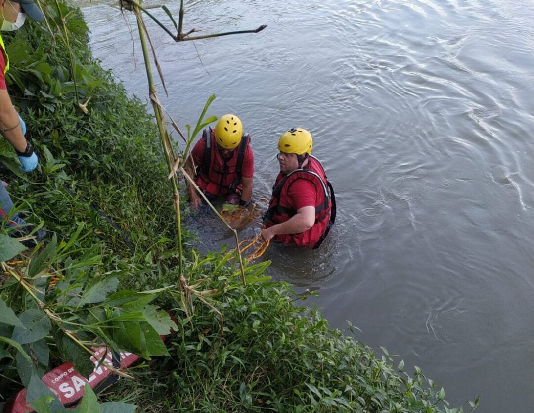 No local, os socorristas encontraram um veículo Renault / Duster no meio do rio, parado em um banco de areia.