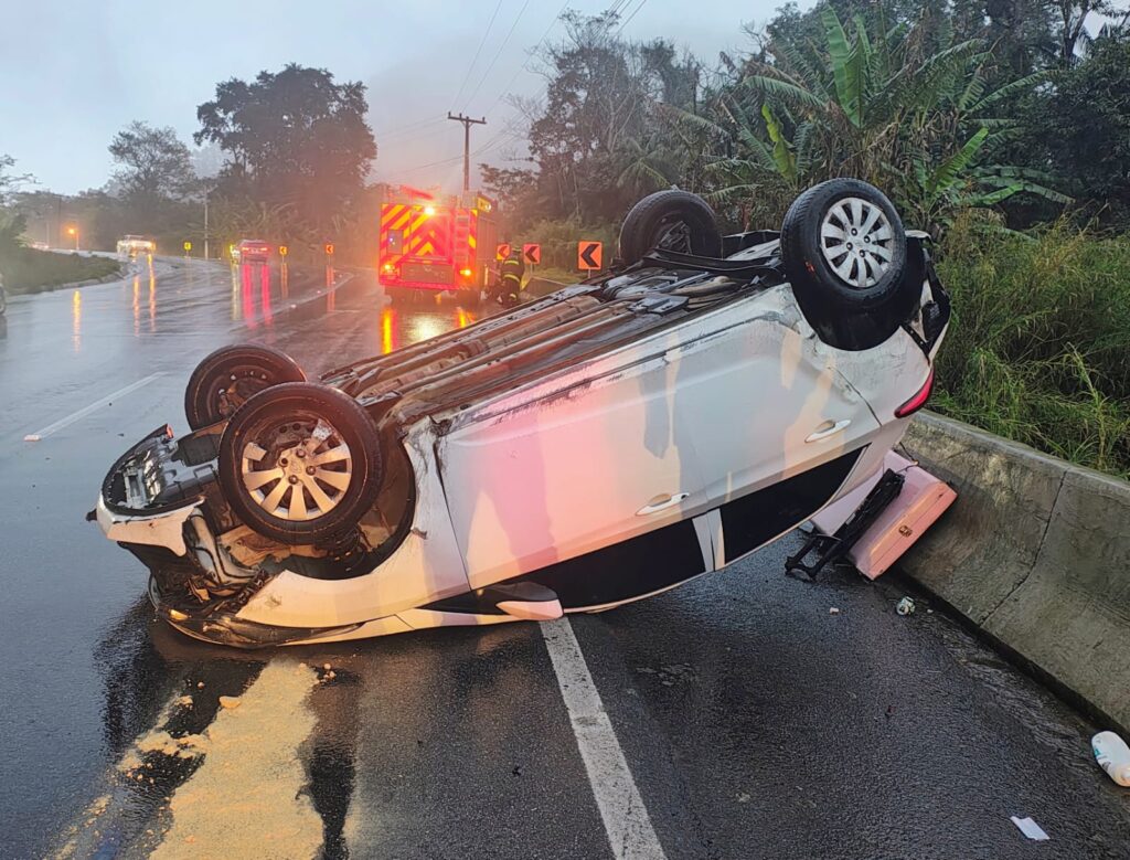 No local, os socorristas encontraram o veículo já capotado e a condutora, fora do carro.