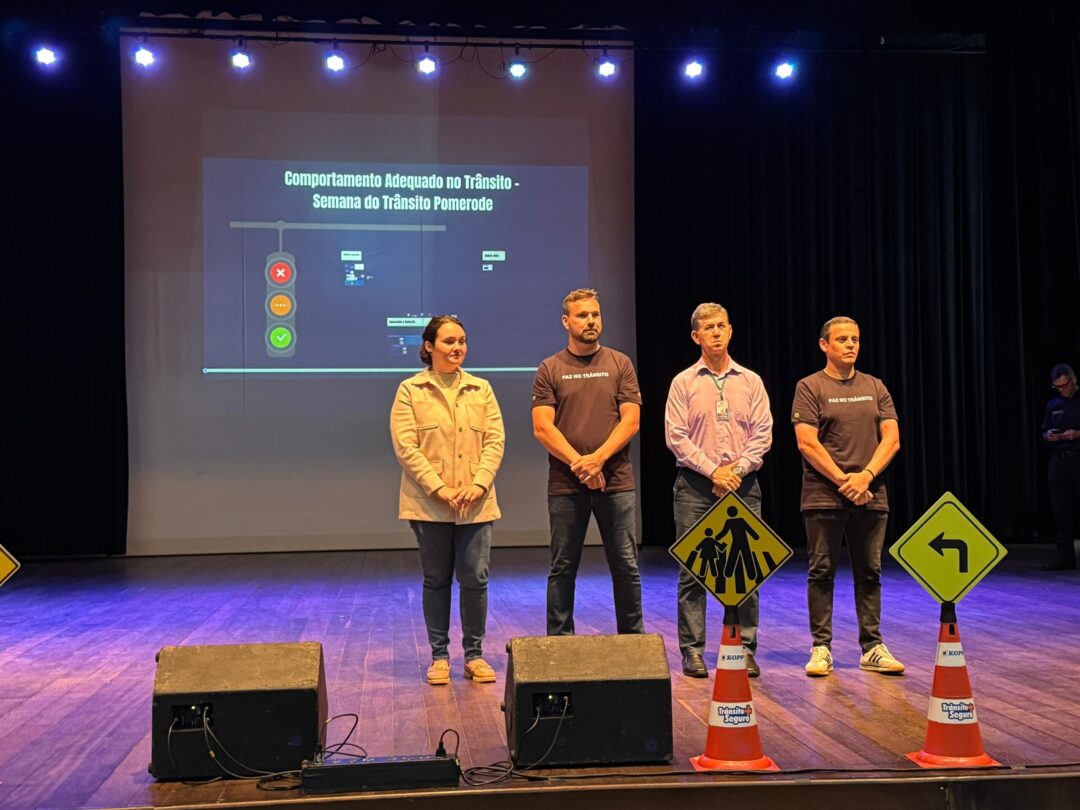 A noite de quinta-feira, dia 18, marcou a abertura oficial da Semana Nacional do Trânsito em Pomerode, realizada no Teatro Municipal, reunindo autoridades, estudantes, educadores e comunidade.