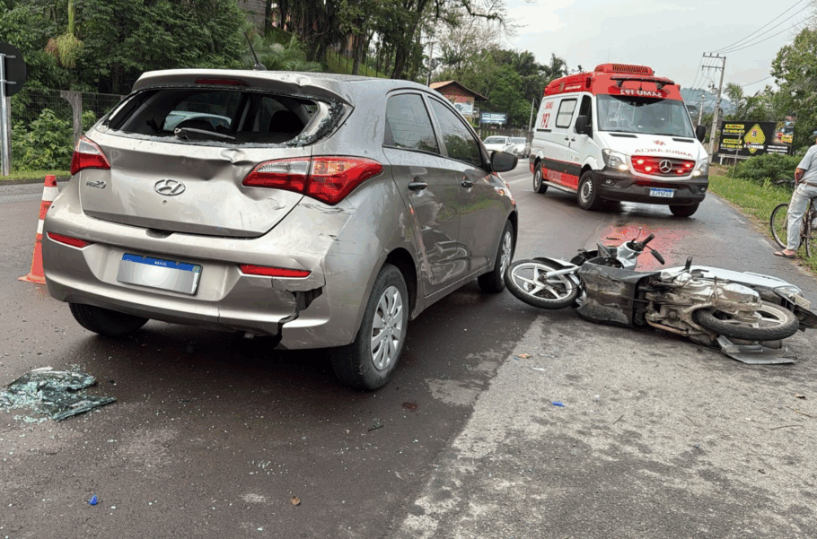 Uma colisão traseira, entre uma moto e um carro, foi registrada no fim da tarde desta segunda-feira, dia 06, na SC-421, em Testo Central.