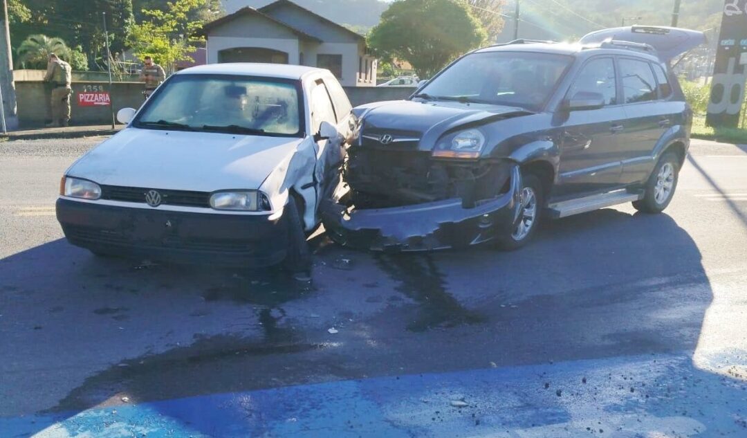O sinistro de trânsito, envolvendo um VW / Gol e uma Hyundai / Tucson, ocorreu na Rua dos Atiradores, altura do numeral 1.300, centro de Pomerode.