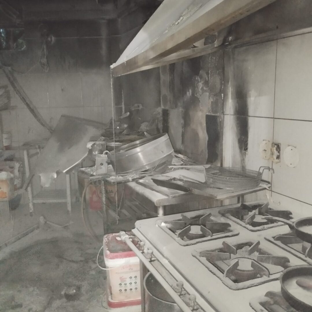 Os proprietários e colaboradores do estabelecimento já haviam controlado parte do incêndio, com o auxílio de extintores.