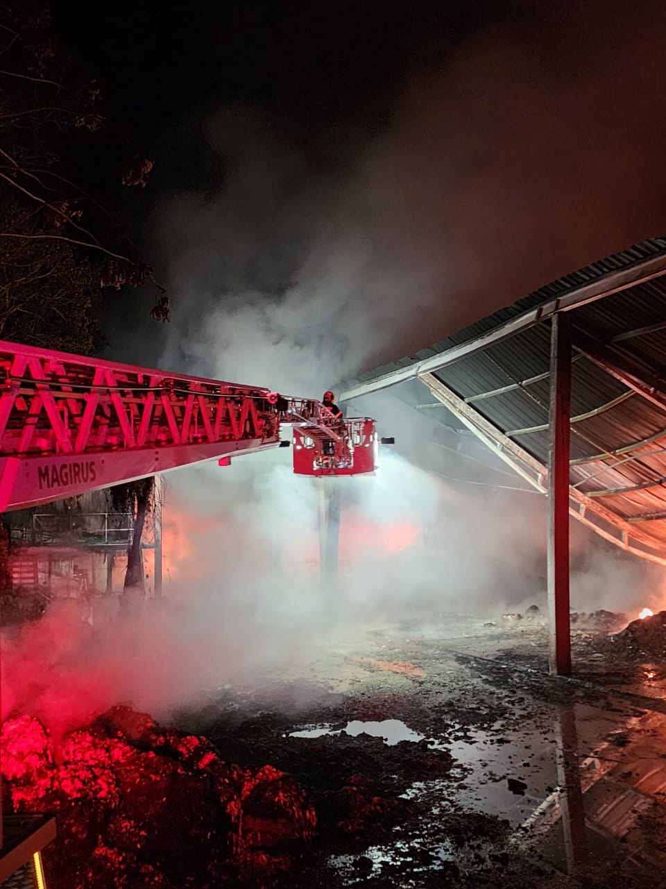 O caso correu por volta das 23h e, no local, toda a estrutura da empresa Fischer Soluções Ambientais estava tomada pelas chamas, já em nível de desenvolvimento completo.