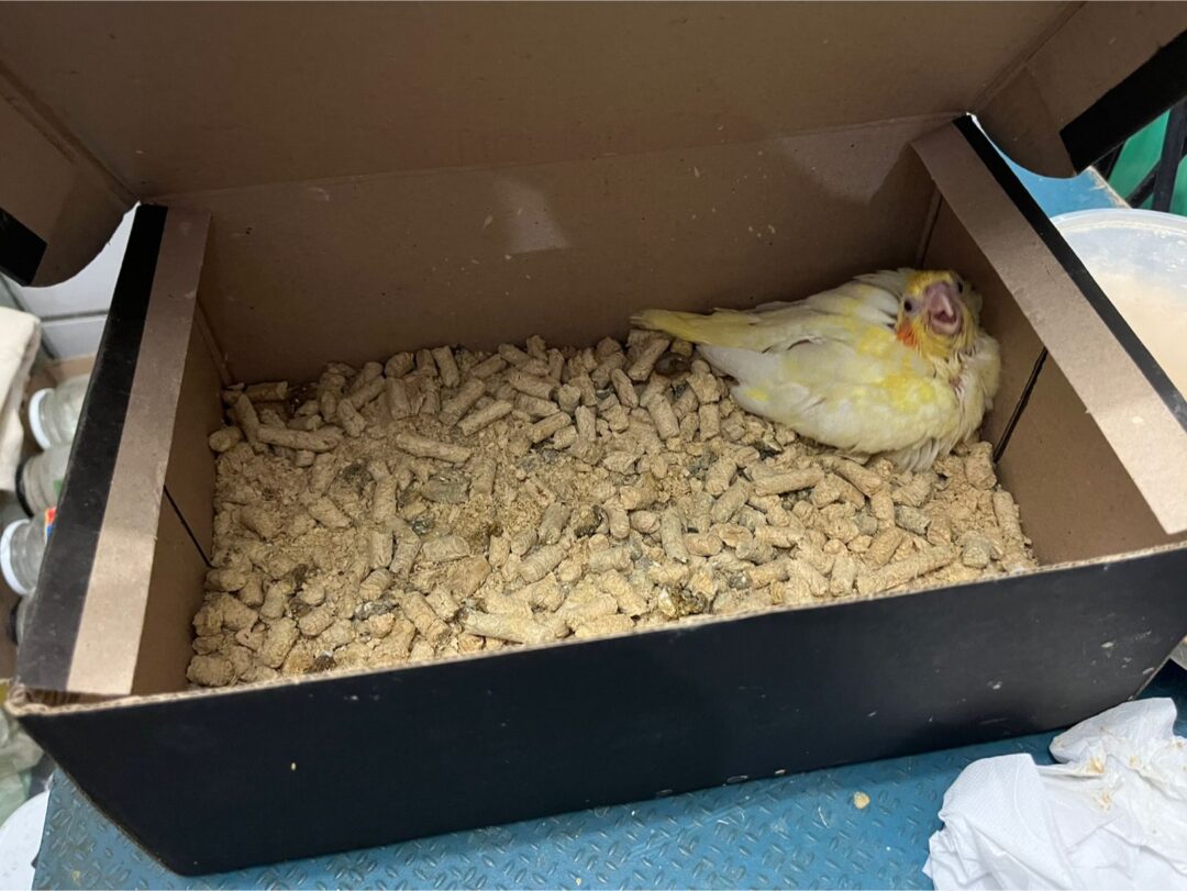 Os animais estavam em espaço insalubre e inadequado, sem abrigo suficiente contra intempéries, com maternidades improvisadas no chão, além de um pássaro trancado em gaiola, dentro de caixa de papelão.