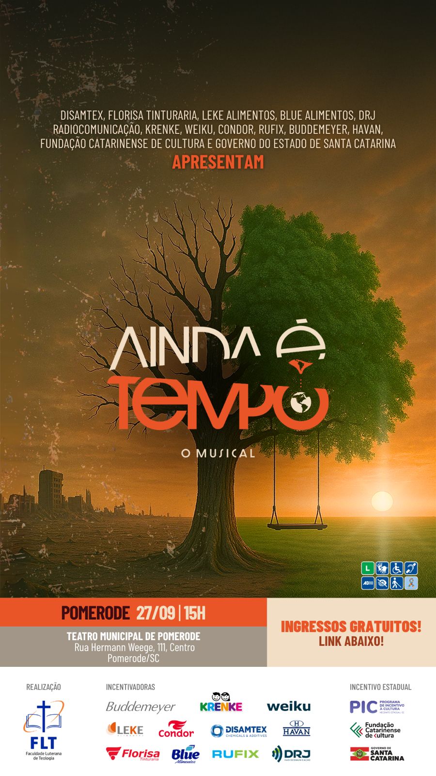 A equipe do Projeto Cultural Arte Para a Vida, da Faculdade Luterana de Teologia, estará promovendo o espetáculo Ainda é Tempo – O Musical.